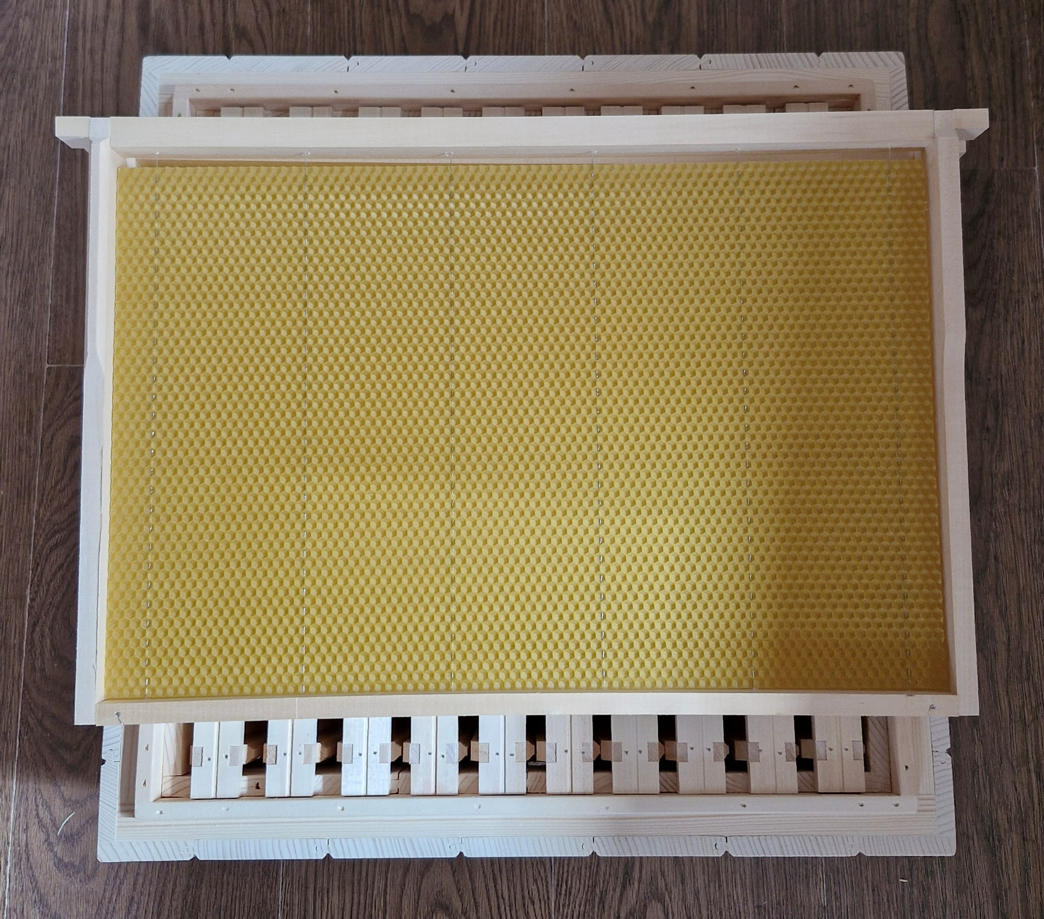 Ramka Dadant z węzą gotowa do włożenia do ula. Wymiary ramki szerokość 435mm x wysokość 300mm, górna beleczka 470,00mm. Ramki są bardzo starannie wykonane, węza firmy SKIBA.