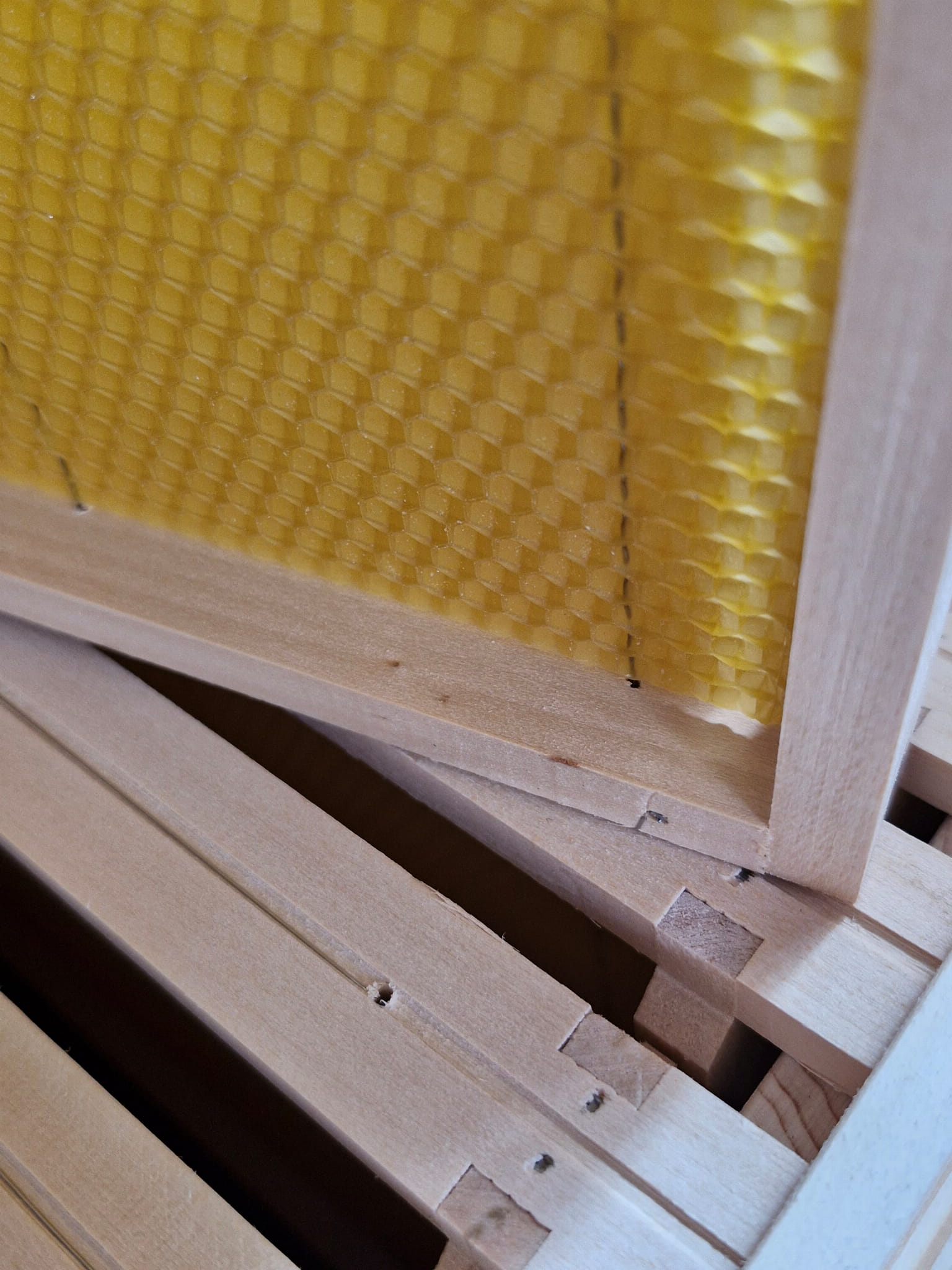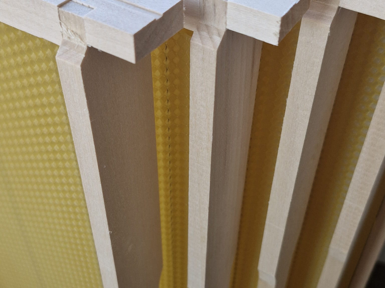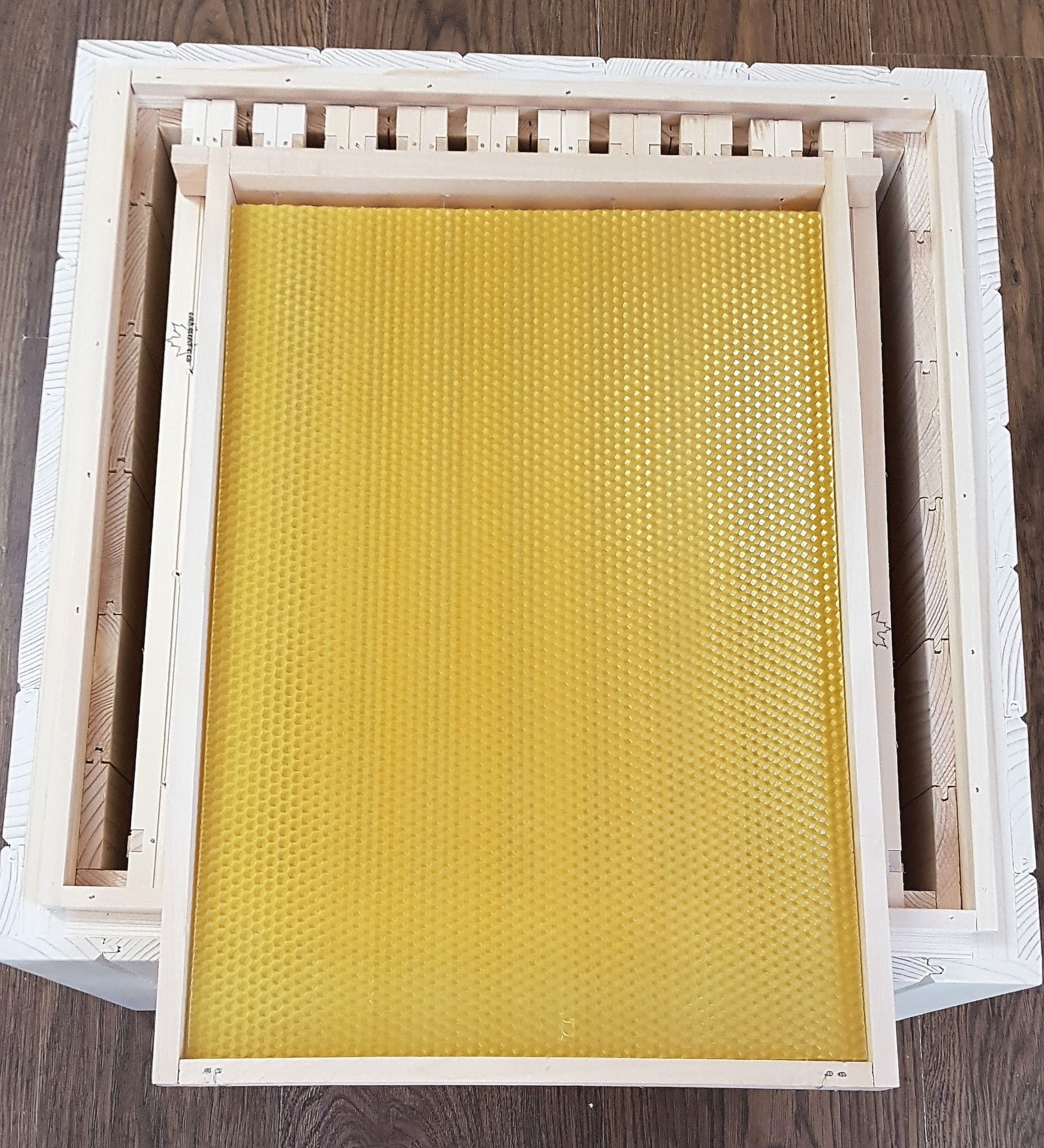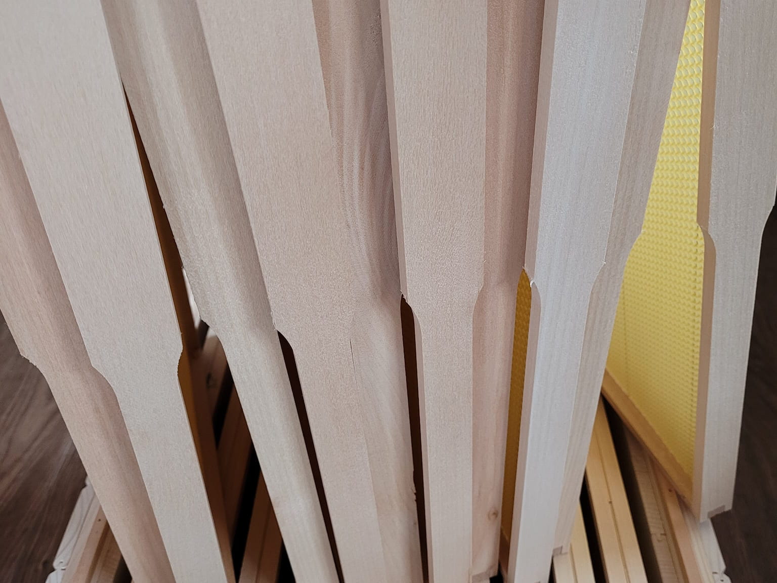 Ramka Warszawska Poszerzana hoffmanowska z węzą gotowa do włożenia do ula. Wymiary ramki szerokość 300mm x wysokość 435mm, górna beleczka 335,00mm. Ramki są bardzo starannie wykonane, węza firmy SKIBA.